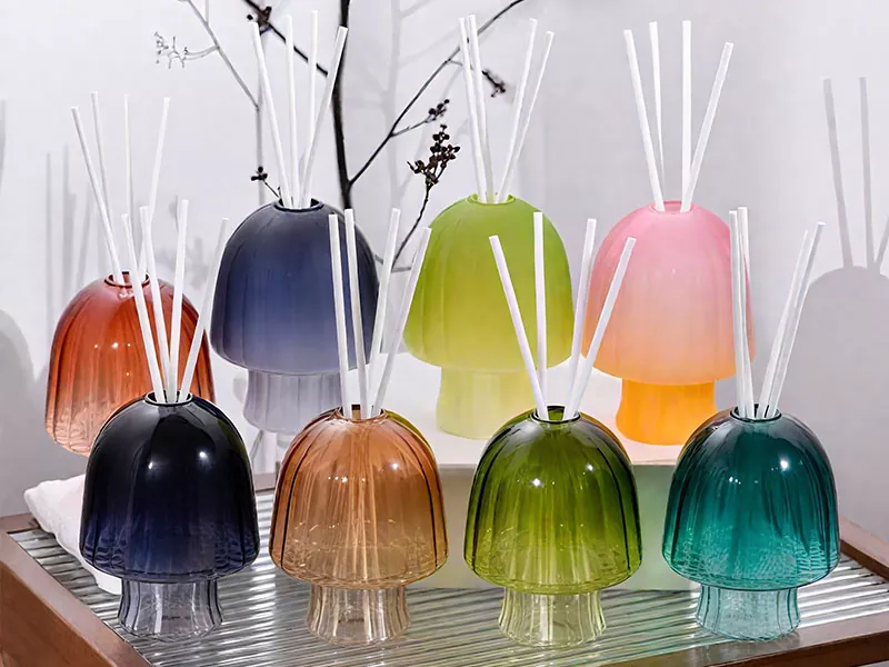 4. Difüzör: Şık cam difüzör bazları olan aroma difüzörleri.