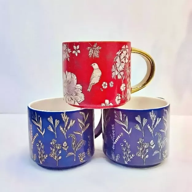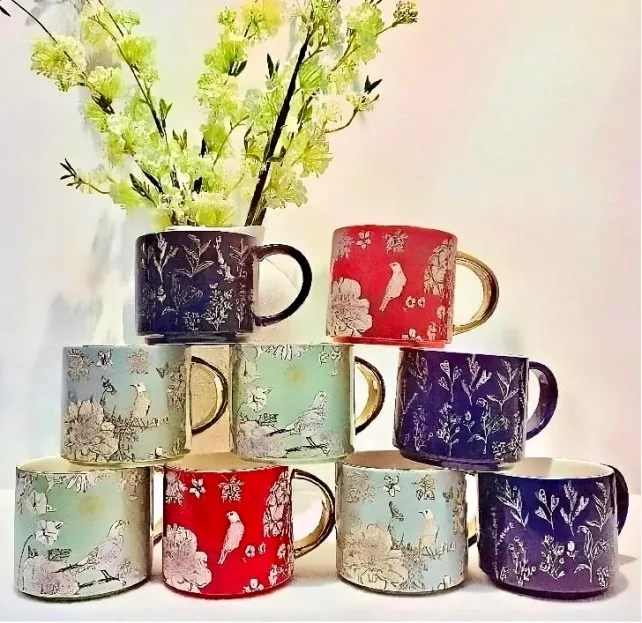 Elektrolizli altın saplı bu seramik kupa, çıkartmalarla titizlikle hazırlanmış, doğadan esinlenen eşsiz bir cazibeyi somutlaştırır. Çiçek açan çiçeklerin hassas dokuları, çevik kuşların canlı formları veya doğal renk bloklarının büyüleyici desenleri olsun, kupa flora, fauna ve canlı renklerin hediyelerini hassas bir şekilde yakalar. Her stile uyacak şekilde, kupanın sapı özelleştirilebilir. Altın kaplama versiyonu, 18K altına benzeyen, sofistike bir dokunuş katarak zengin, altın bir renk tonu ile parlıyor. Ayrıca en sevdiğiniz renge göre özelleştirilebilir.