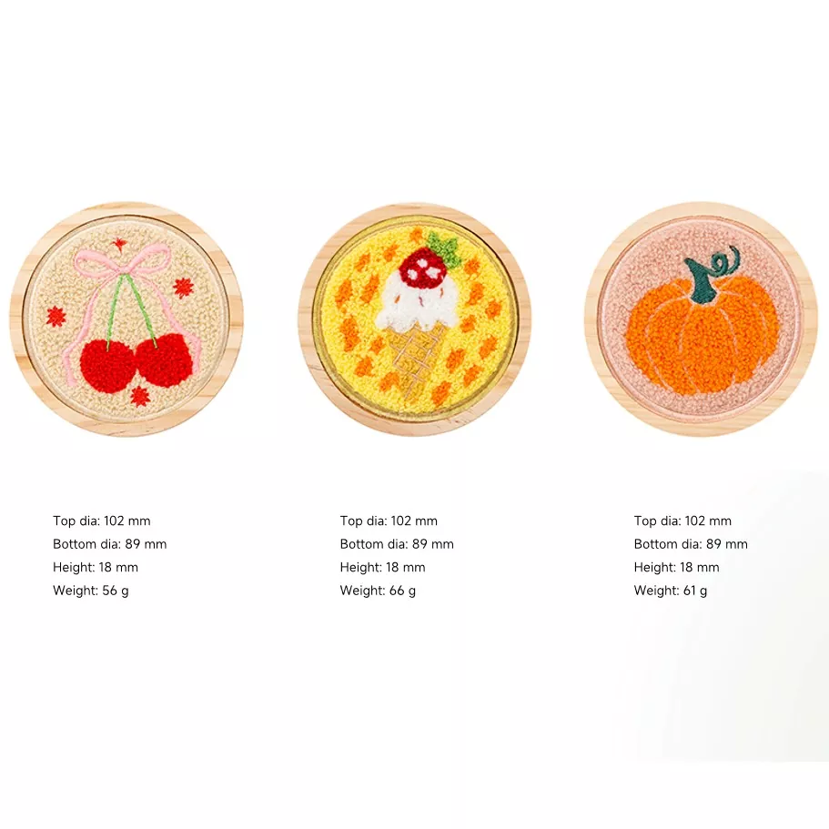 Hepimizin standart boyutlarına sahip olduğumuz sevimli el yapımı, çevre dostu ahşap kapaklar: 102mm üst çap, 89mm alt çap ve 18mm yükseklik. Ancak ağırlıklar biraz değişir: 51g, 53g, 56g, 58g ve 60g. Belirli bir boyut veya desen varsa, bize bildirmekten çekinmeyin! Fiyattan ürüne her şeyin mükemmel bir şekilde ihtiyaçlarınıza göre uyarlandığından emin olacağız.