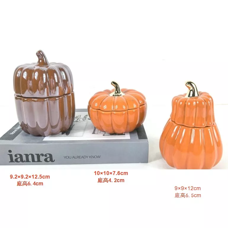 Cadılar Bayramı Kabak Seramik Süsleri: Kavanozlar, balkabağının doğal tonunu çoğaltmak için gerçekçi ve sanatsal olarak hazırlanmıştır. Kavanozlar koyu kahverengi ve parlak turuncu olarak gelir, balkabağının doğal rengini taklit eder ve rafine ve göz alıcı bir kaplama için metalik bir kapak ve düğme içerir.