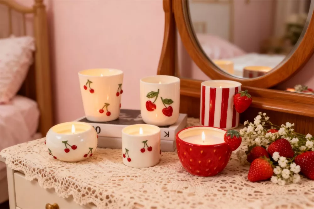 BYF'nin Süper Sevimli Seramik Mum Kavanoz serisi, "süper sevimli" tasarım stiline sahip üst düzey el yapımı seramik mum kavanozlarından oluşur. Tasarımlar, kırmızı kirazlar, üç boyutlu fiyonklar ve çilekler gibi klasik tatlı unsurları pürüzsüz bir cila ve çeşitli şekillerle birleştiriyor. Güvenli ve çevre dostu malzemelerden yapılmış olup mükemmel ısı direncine sahiptir ve standart fitillere ve çeşitli mum tabanlarına mükemmel şekilde uyum sağlar, bu da onu hem yüksek kaliteli bir mum kabı hem de evinizin dekorunu güzelleştiren sanatsal bir dekoratif öğe haline getirir.